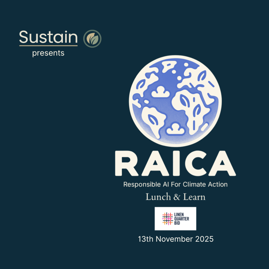 An interactive lunchtime session explored how Responsible AI for Climate Action (RAICA) can help organisations in the Linen Quarter take practical steps toward sustainability.